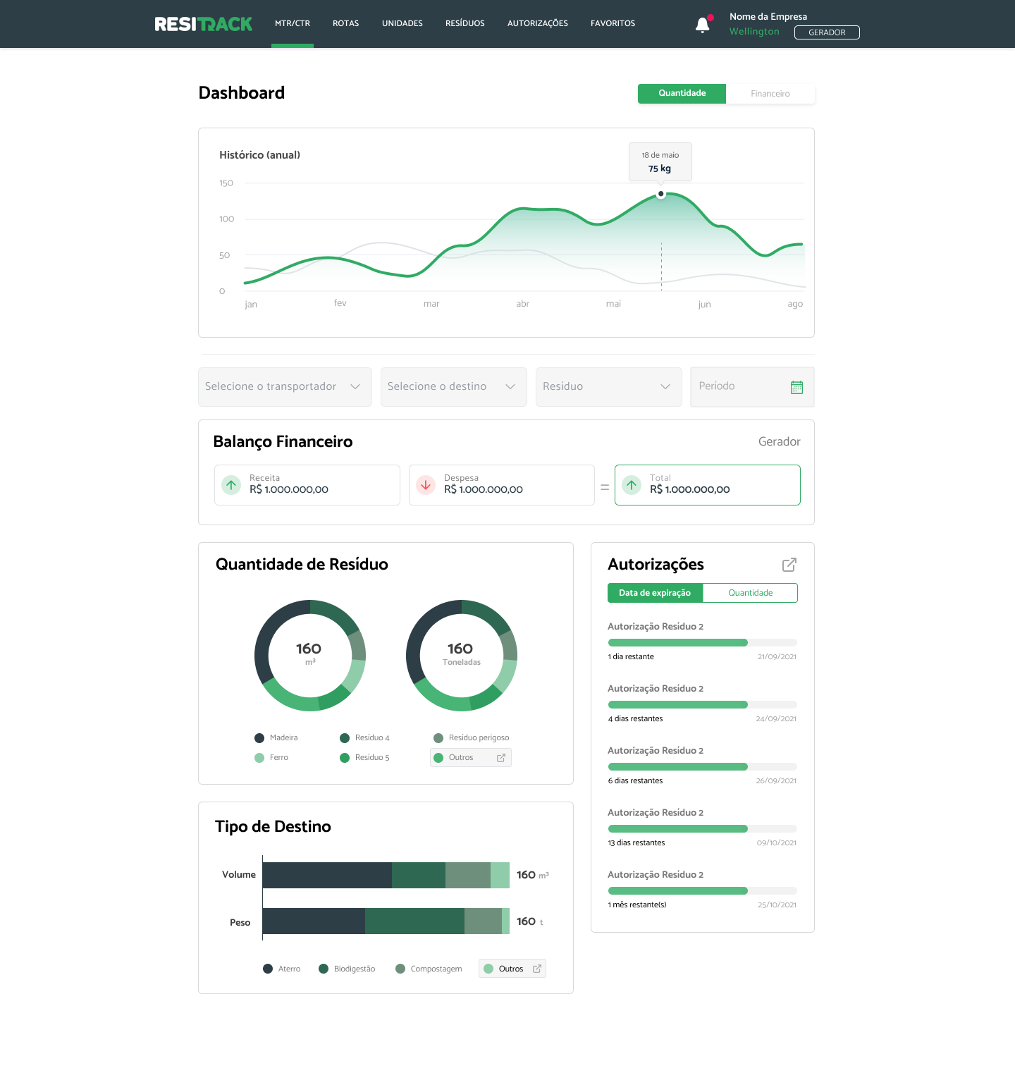 - Disponível para empresas geradoras, transportadoras, destinos finais, transbordos e gerenciadores